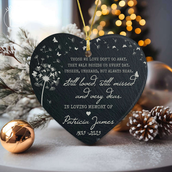 13. Personalized Those We Love Don't Go Away Dandelion Memorial Ceramic Heart