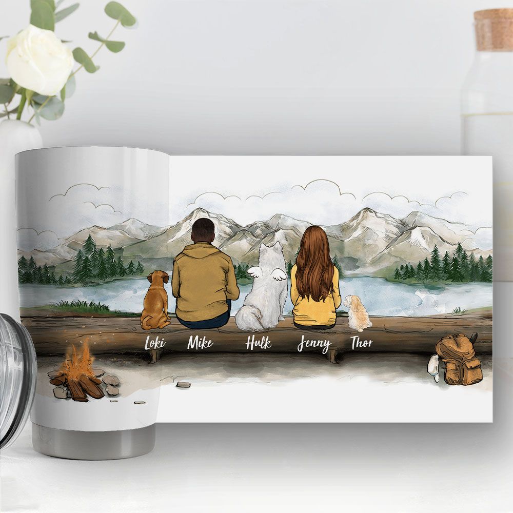 Celebrate companionship with the Couple and Dog Tumbler. This design shows off the joyous union of a couple and their dog, making it a sentimental item for partners who cherish their pooch as part of the family.