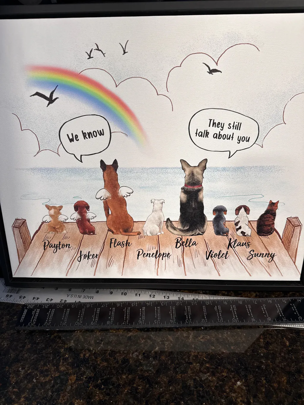 This was the perfect personalized gift for my daughter; unfortunately, I had to wait until AFTER her June birthday to write a review! Unifury really worked with me to include two additional pets since the item purchased only offered a maximum of 9 pets/people. They did a great job with the finished project and I've attached a photo that my daughter sent me...She said she loves it and cries every time she looks at it!