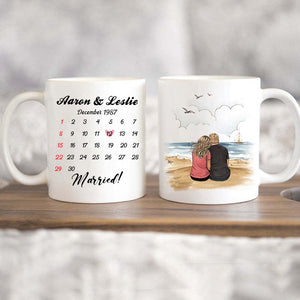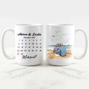 Bring the tranquility of the beach to your morning coffee with the Personalized Anniversary Calendar Coffee Mug. This custom mug is designed for couples who share a love for the sea and sand. As part of the anniversary mugs collection, it's a daily reminder of sunny days spent together by the beach. Perfect as couple mugs, they capture the essence of your seaside memories together.