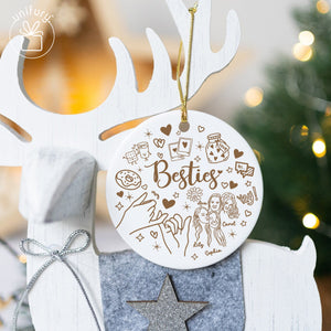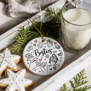 This adorable ceramic ornament is the perfect tribute to your girl squad, best friends or even fur besties. The design features a charming, hand-drawn doodle style that captures the essence of great friendship.