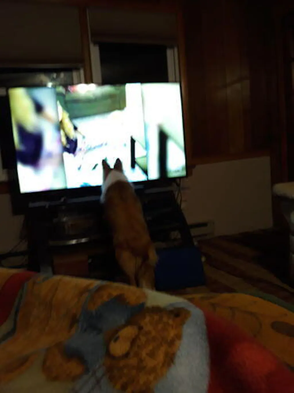 It was the scene on the dock, overlooking a rainbow with her calico cat & the angel-winged