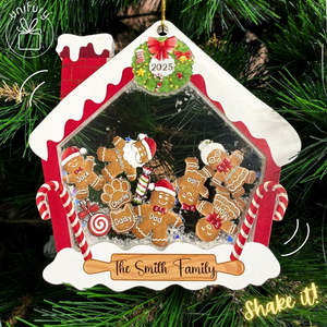 Celebrate the holiday season with our Gingerbread House Family With Pet 4D Shaker Ornament. This adorable ornament features a customizable gingerbread house design, complete with representations of each family member and your beloved pets. The 4D shaker effect adds a magical touch, bringing festive cheer to your Christmas tree. Perfect for families and pet lovers, this personalized ornament is a charming keepsake that captures the warmth and joy of the holidays year after year.